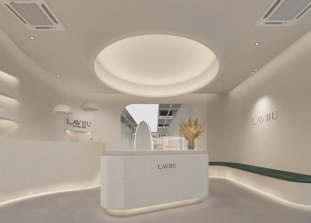 Therefore, while designing Laviiu logo for One Hair, we endeavored to integrate this philosophy. After multiple sketches, Nakaya & Co ultimately chose a delicate font for the Laviiu letter mark logo. The slender font presents a unique, serene beauty that is not noisy or ostentatious, yet elegant. Moreover, a minimalist logo design like this is easier to remember in today's age of information overload compared to complex and abstract graphics.