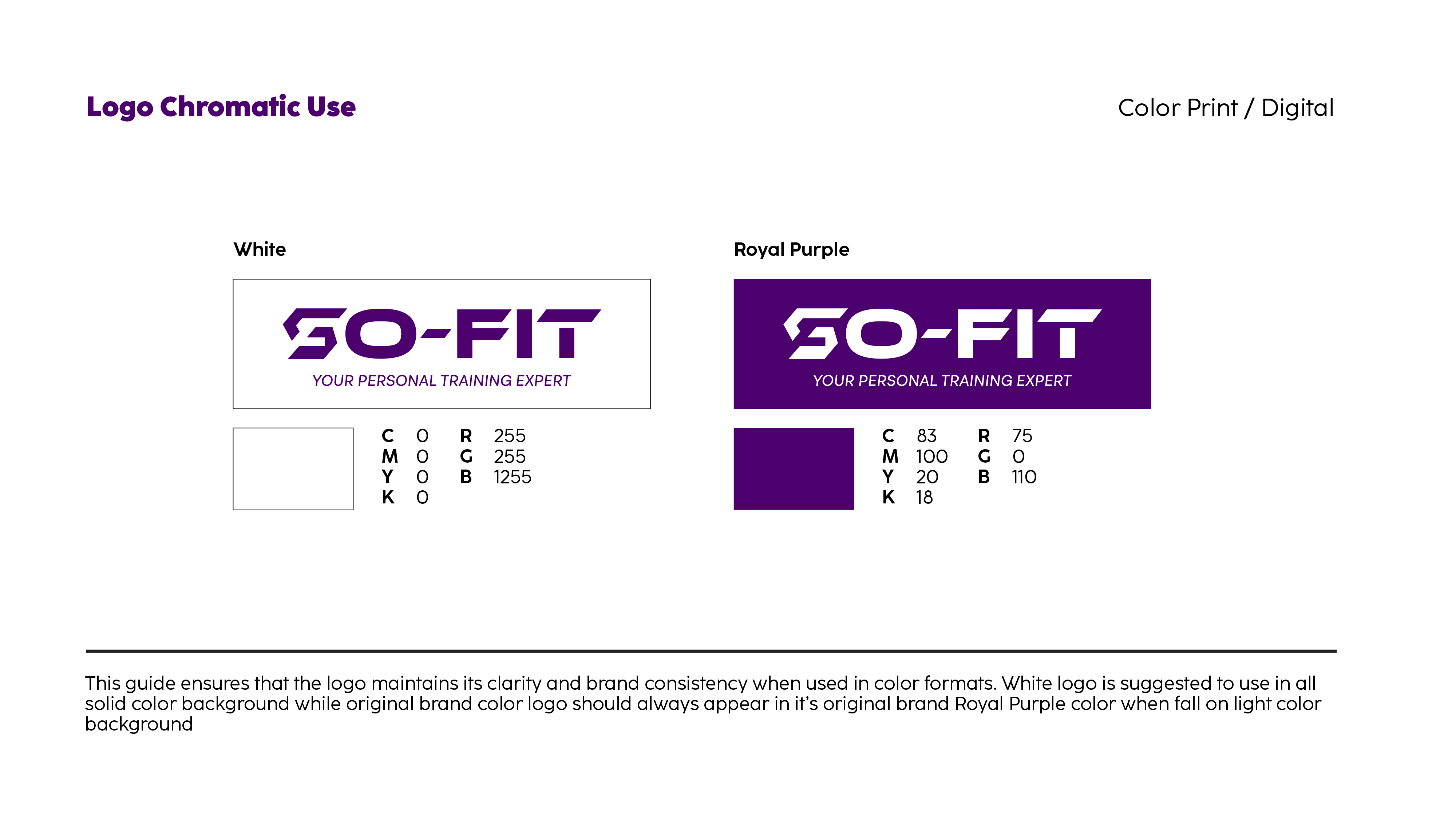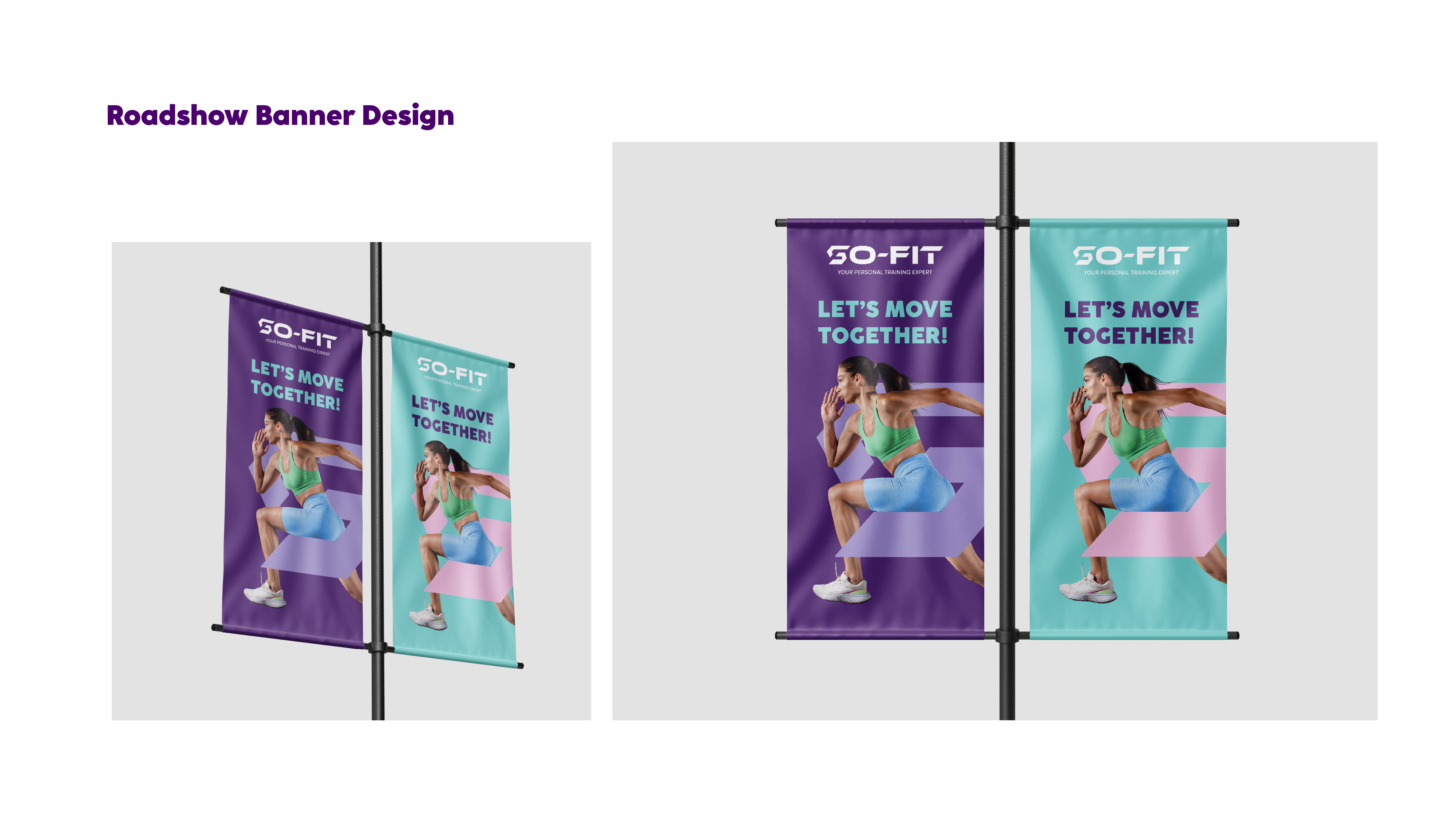 Furthermore, we adopted a minimalist design style, ensuring clear visibility and versatility across both digital media and physical applications. The deep, rich purple we selected symbolises determination, ambition, and sophistication, reinforcing So-Fit’s identity as a bold yet refined fitness brand.