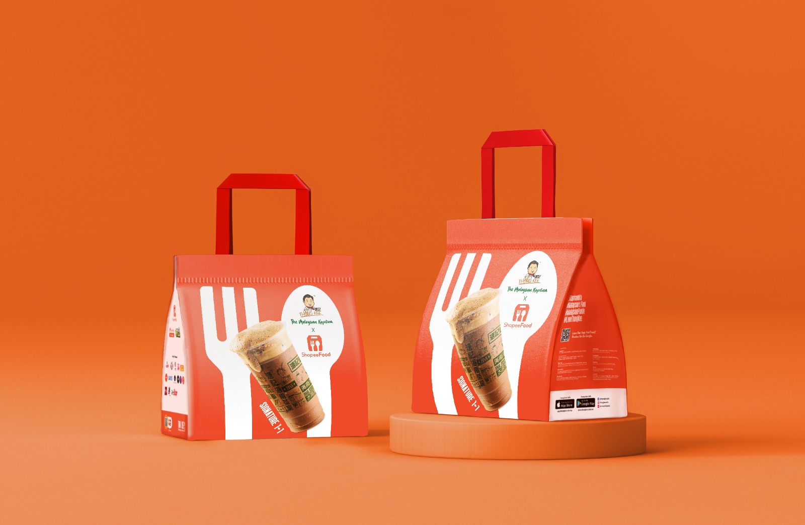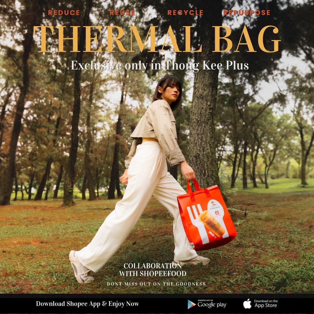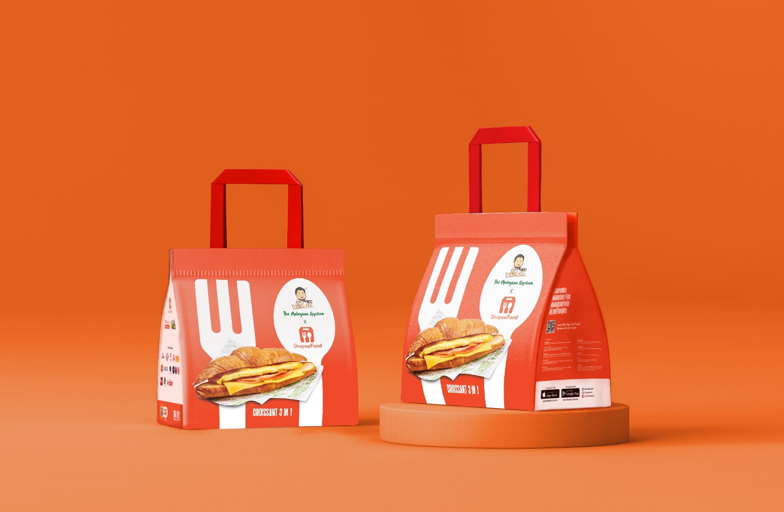 Thong Kee’s Iconic Products – To amplify Thong Kee’s presence, we boldly featured its two most iconic offerings—3-in-1 Croissant and 1+1 Coffee—directly on the bag. This striking visual represents "We bring Thong Kee to you with ShopeeFood."